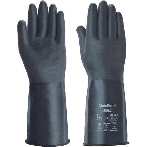 • nejtenčí rukavice vyrobené z butylu poskytují tu nejlepší odolnost proti nejagresivnějším chemikáliím, bez kompromisů ohledně obratnosti a pohodlí • rukavice 38-514 nabízejí vynikající odolnost proti aldehydům, ketonům a esterům stejně jako proti koncentrovaným minerálním kyselinám • rukavice jsou velmi pružné a poskytují vynikající obratnost • vytvořeny pro pohodlí – s přirozeným, zaobleným ergonomickým tvarem a pocitem jemného materiálu • nabízejí jednoduché navlékání a dobrý úchop • nepřítomnost latexových proteinů znamená, že zde není žádné riziko alergií na latex • zdrsnělý povrch na ruce pro bezpečnější manipulaci