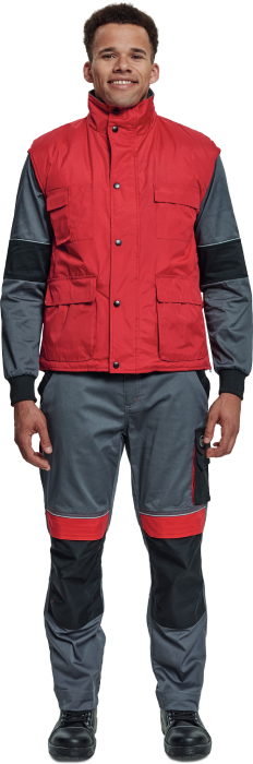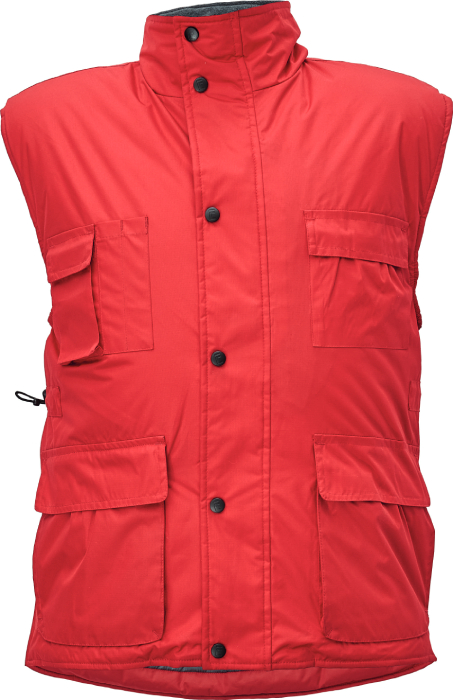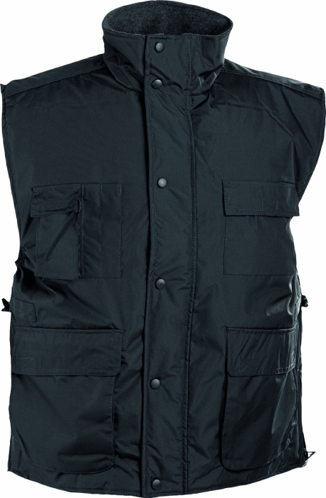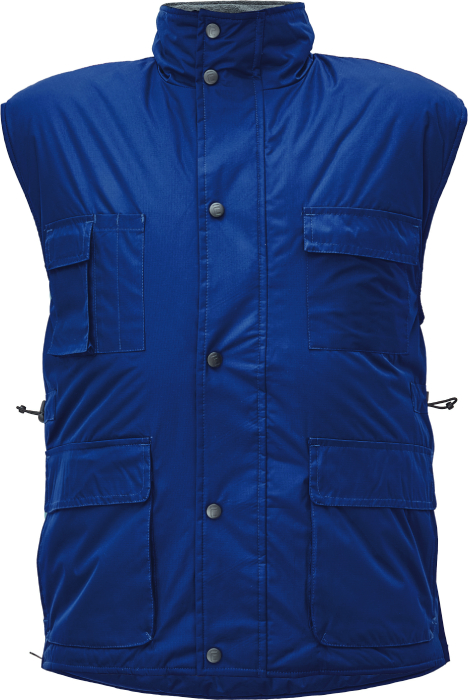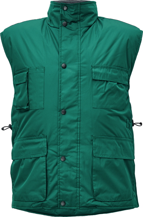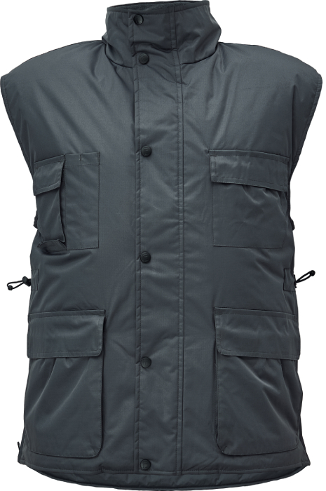 • zateplená nepromokavá vesta • prodloužený díl na zádech • polyesterový materiál s mechanicky odolnou úpravou RipStop • spodní lem ke stažení na šňůrku • vnitřní vstup pro strojní vyšívání • na bocích je polohování na zip pro regulaci obvodu vesty