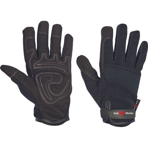 Clarino tlumící vycpávky v dlani, clarino je těžká kvalitní syntetická kůže, elastický hřbet zajišťuje optimální pohyb ruky, vysoká citlivost prstů, proto vhodné pro technické práce, zapínání na suchý zip na zápěstí