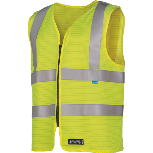 nehořlavá a anti statická vesta bez rukávů; zapínání na zip; nehořlavé 5 cm široké reflexní pruhy.