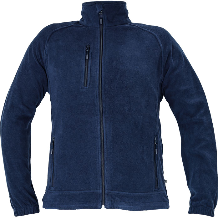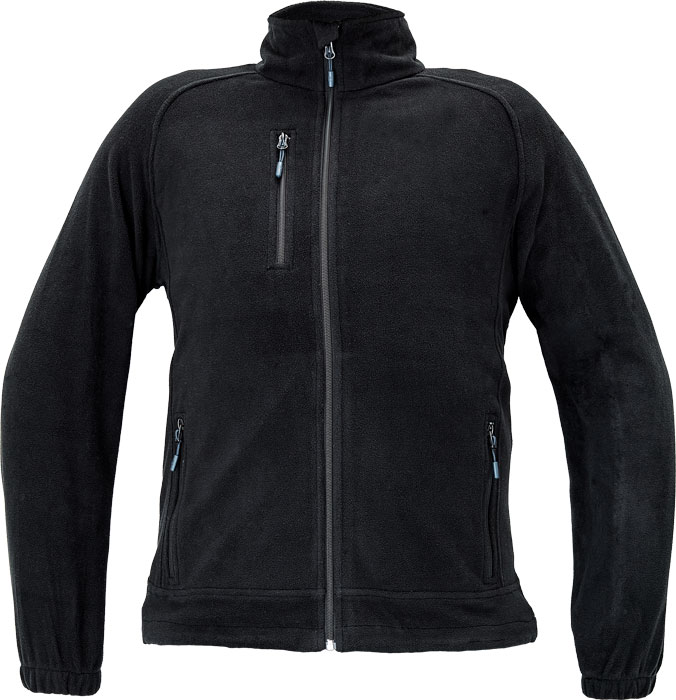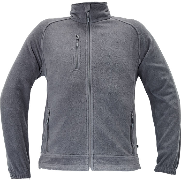 pánská fleecová bunda s raglánovými rukávy, zapínaní na zip, 1 náprsní kapsa a 2 boční kapsy na zip, pružné spodní lemy rukávů, šňůrka na stažení v pase.
