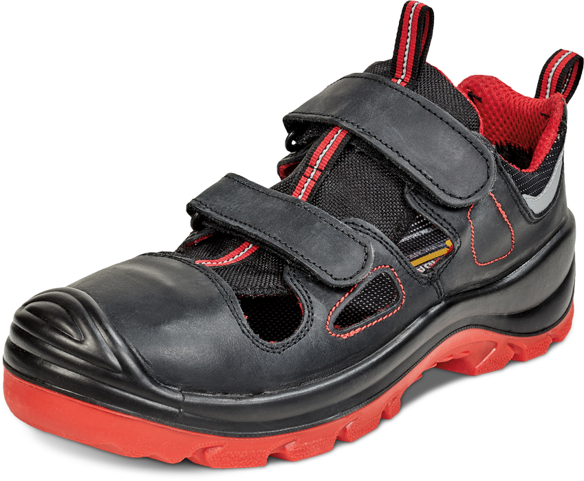 Bezpečnostní sandál s nekovovou tužinkou a aramidovou stélkou odolnou proti propíchnutí. Podešev z PU / TPU. Svršek z kvalitní lícové kůže.