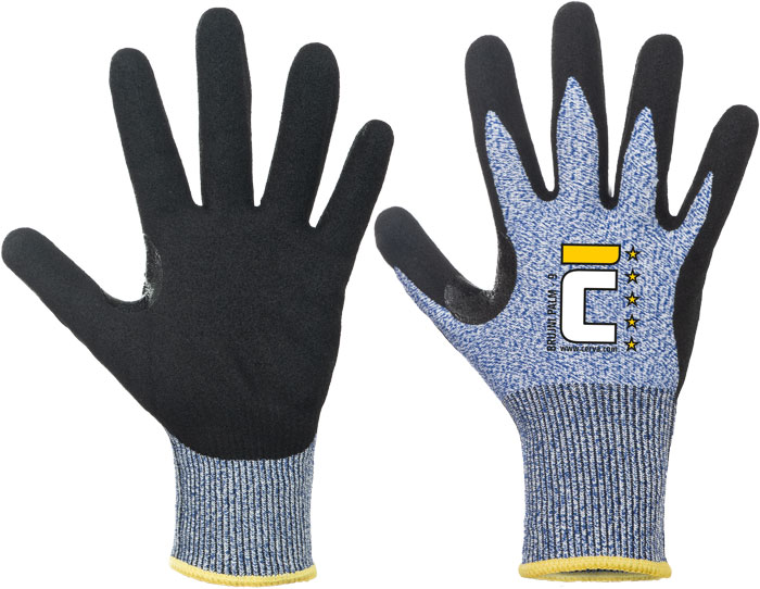 Pletené bezešvé rukavice s máčením v mikroporézním nitrilu v dlani s ochranou vůči řezu B. Zesílení v oblasti mezi palcem a ukazováčkem pro delší životnost rukavice. Vhodné pro manipulaci s ostrými a mastnými díly, manipulaci se sklem, opracování mastných kovů anebo plechů nebo údržbu strojů. Rukavice neobsahuje skelné nebo ocelové vlákno a slpňuje Oeko-Tex.