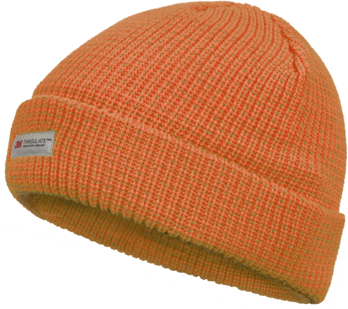 zimní pletená čepice s lemem; vnitřek polyester fleece 3M; vetkané reflexní vlákno.