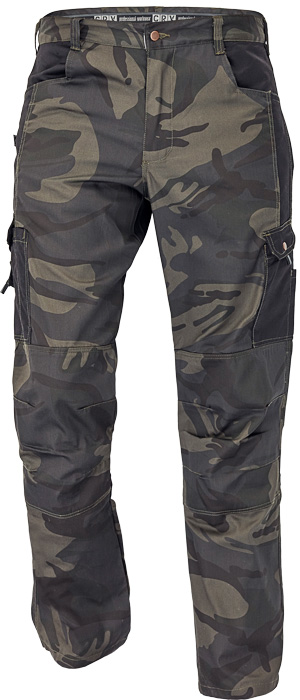 • pánské kalhoty z lehkého T/C twillu 190 g /m² • 2 zadní nakládané kapsy • 2 boční kapsy a 2 multifunkční kargo kapsy • zesílené část kolen • skvěle padnoucí střih • atraktivní design kamufláž