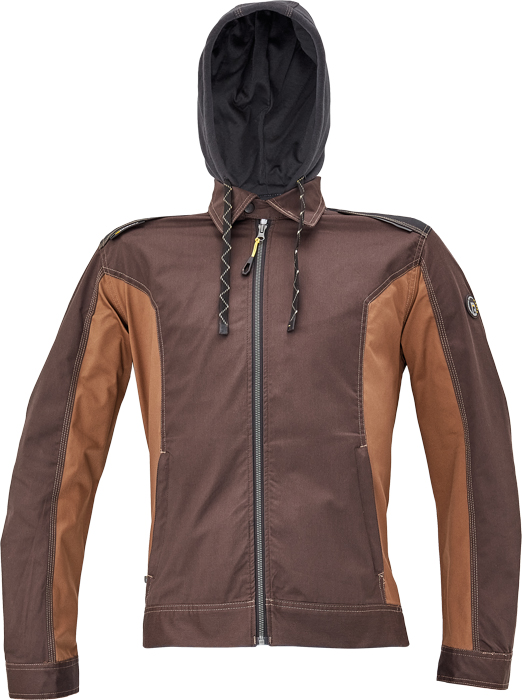 pánská pracovní bunda, elastický inovativní materiál TRIFIBETEX®, ergonomický střih, odnímatelná kapuce, zesílená oblast ramen z materiálu Oxford, 2 boční kapsy, 1 vnitřní kapsa na telefon, reflektivní prvky v barevném odstínu