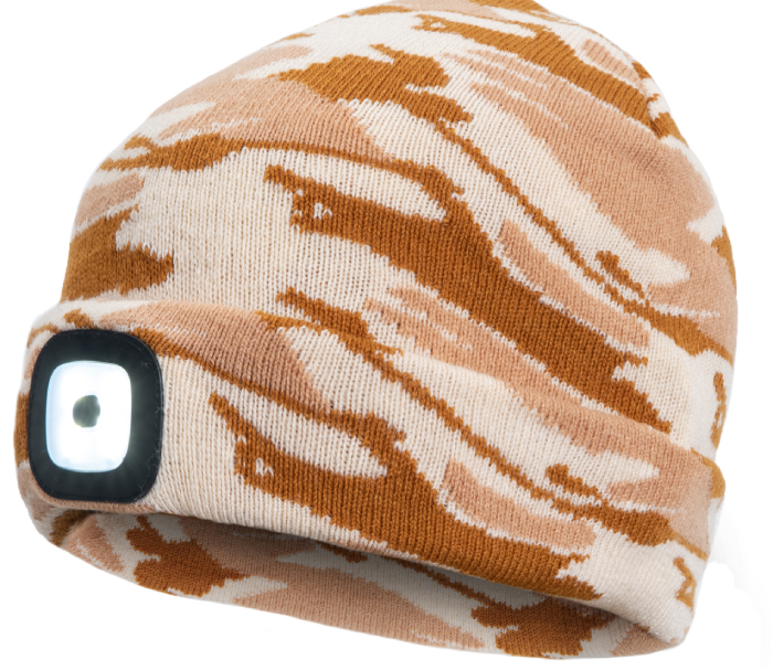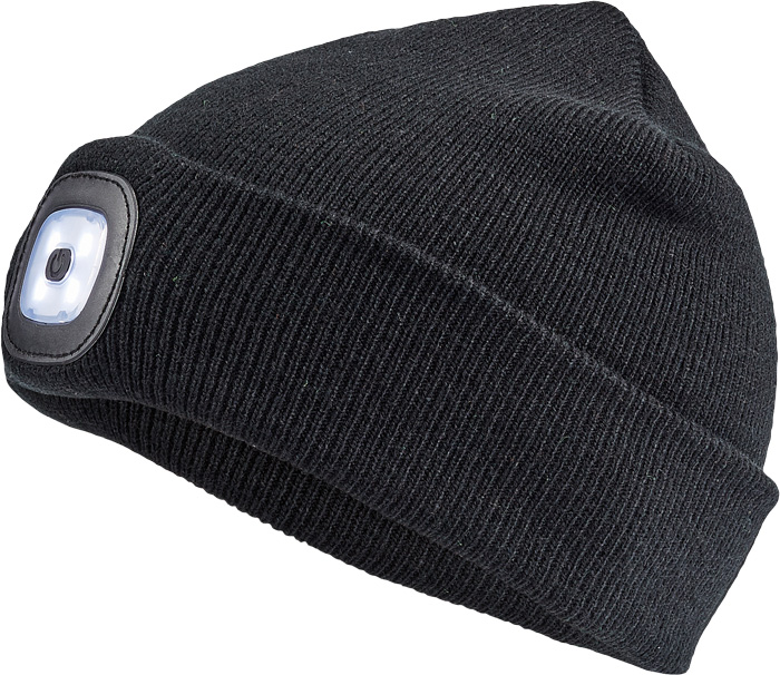 pletená čepice s integrovanou LED lampou; 3 funkce svícení; LED lampu lze vyjmout a dobít přes USB konektor; nabíjecí výkon: 0,5W; nabíjecí napětí: 5V; nabíjecí proud: 200 mAh; jmenovitý výkon: 1W