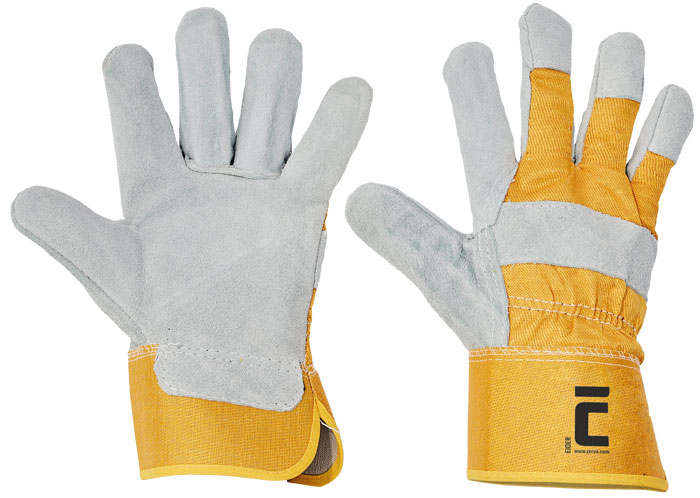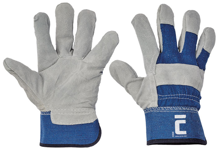 Rukavice z jednoho kusu silné hovězí štípenky v dlani s podšívkou, bavlněné tkaniny na hřbetu, s bavlněnou vyztuženou manžetou, celokoženými palci a ukazováčky a překrytými špičkami prstů.
