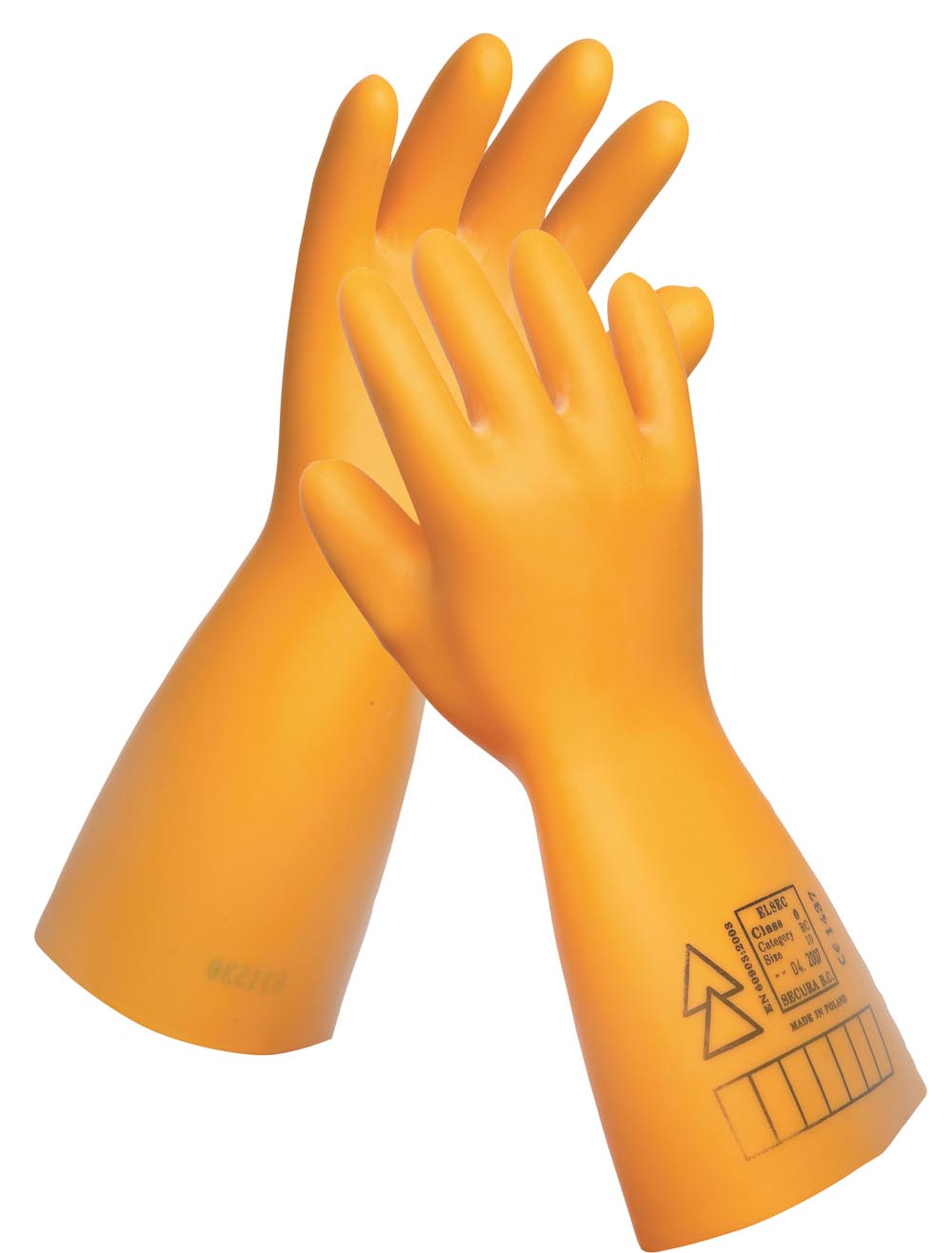 Dielektrické izolační rukavice z kvalitního přírodního latexu pro ochranu před nebezpečným napětím. Norma: EN 60903.