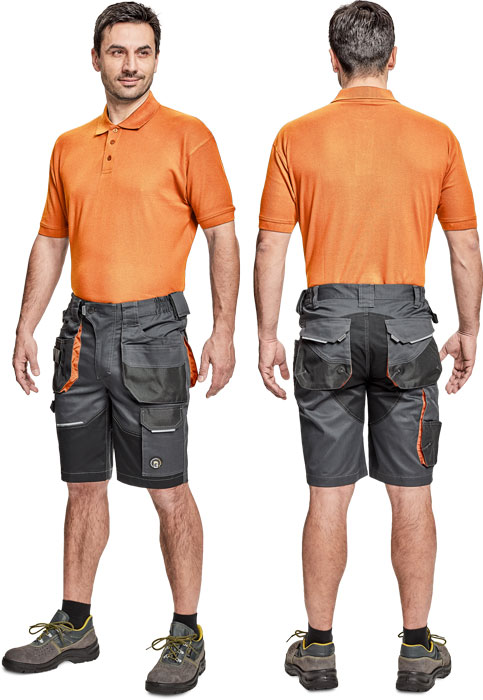 pánské pracovní šortky; moderní střih a atraktivní design; mnoho multifunkčních a prostorných kapes; 2 poutka na nářadí; odolné trojité prošití nohavic a sedu; elastické zpracování pasu; "D" kroužek; reflektivní prvky; kontrastní prošítí a uzávěrky