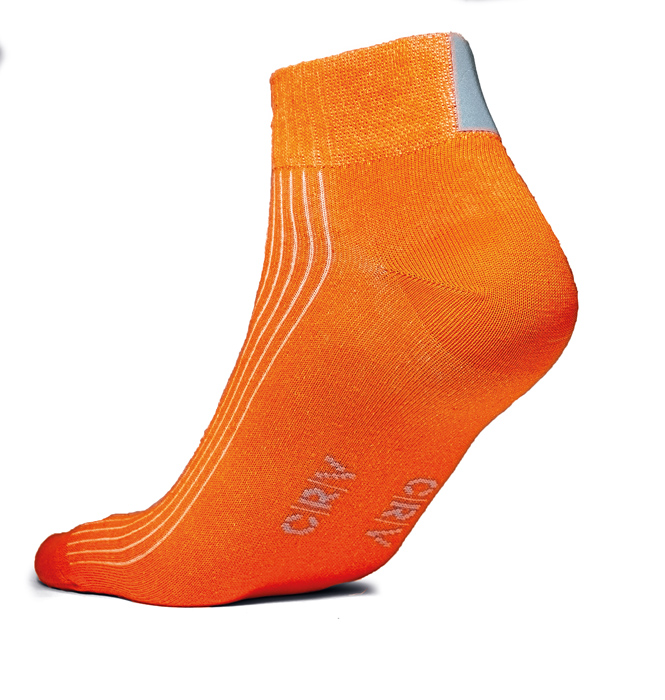 krátká sportovní ponožka ve výrazných barvách s reflektivním páskem na zadní straně