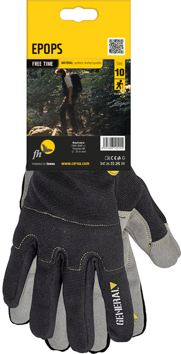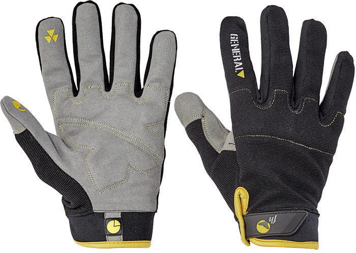 Rukavice z umělého semiše v dlani, Spandexu na hřbetu s chrániči kloubů, se stahovací manžetou na suchý zip a podšívkou v dlani.