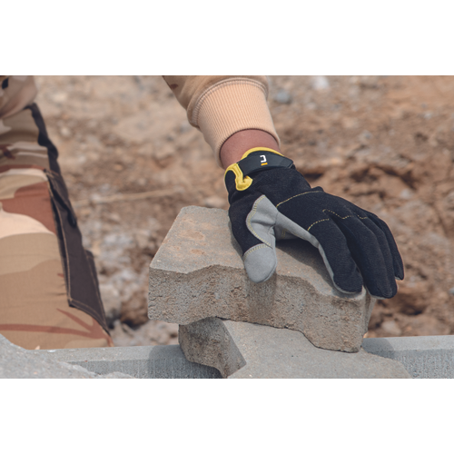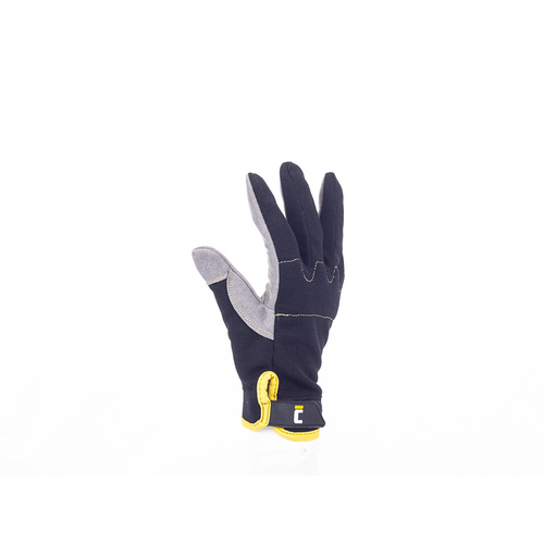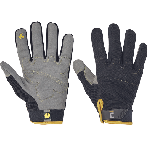 Rukavice z umělého semiše v dlani, Spandexu na hřbetu s chrániči kloubů, se stahovací manžetou na suchý zip a podšívkou v dlani.