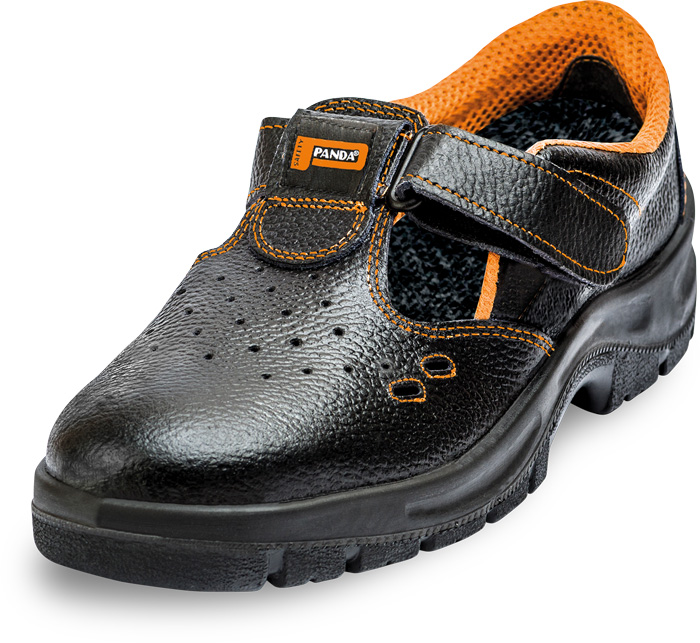 Bezpečnostní sandály s ocelovou tužinkou, antistatickou a protiskluzovou PU/PU podrážkou rezistentní pohonným hmotám, absorpcí energie v patě a svrškem z prodyšné kůže.