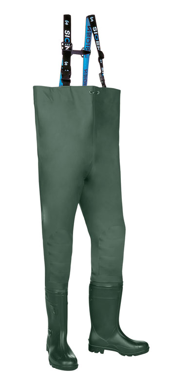 Prsačky s přeskami na šlích s vnitřní kapsou a elasticky stahovatelným pásem. Bezpečnostní obuv s ocelovou tužinkou a stélkou proti propíchnutí.