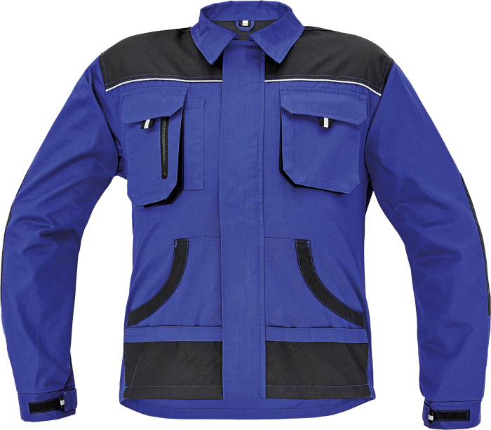 pánská bavlněná pracovní bunda; zapínaní na zip kryté légou; 2 náprsní kapsy s klopou na suchý zip; 2 multifunkční postranní kapsy v pase; polyester Oxford zesílení v loketních částech a ramenou.