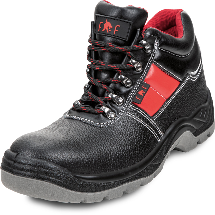 Bezpečnostní kotníková obuv s ocelovou tužinkou, stélkou proti propíchnutí, PU/PU podrážkou rezistentní olejům. Svršek – reliéfní štípaná kůže. Stříbrné reflexní doplňky.