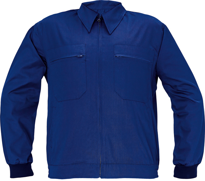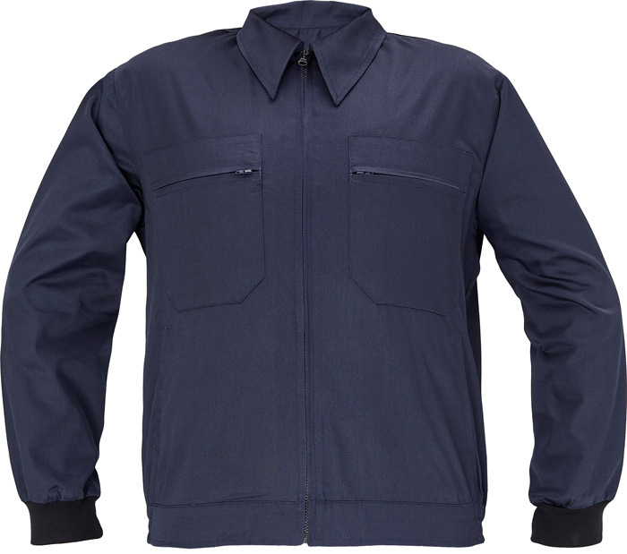 pánská pracovní bunda, 2 náprsní kapsy na zip, 2 postranní kapsy, elastické manžety a spodní lem; 20 % bavlna + 80 % polyester