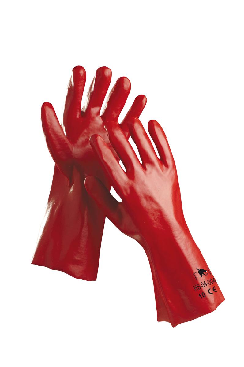 Šité bavlněné rukavice máčené v PVC, v délce 35 cm.