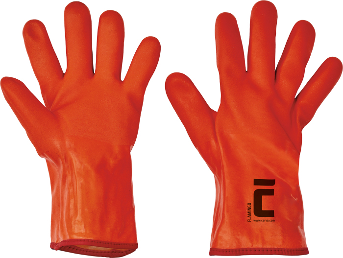 Rukavice šité z bavlněného úpletu, máčené v PVC, s polyuretanovou vložkou a podšívkou z teplákoviny, v celkové délce 35 cm.