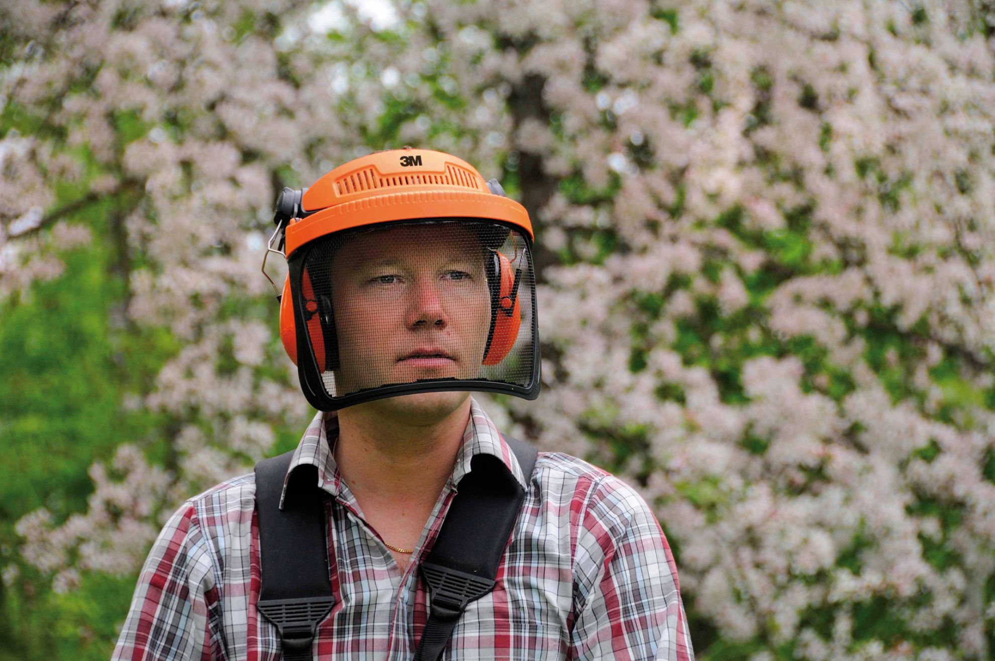 Kombinace náhlavního systému 3M G500 s drátěným obličejovým štítem z nerezové oceli 5C a sluchátky OPTIME I SNR: 26 dB.