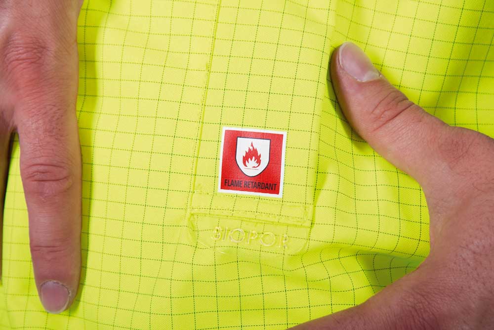 Antistatické, nehořlavé a chemicky odolné kalhoty s pevnou bavlněnou nehořlavou podšívkou a přelepenými švy.