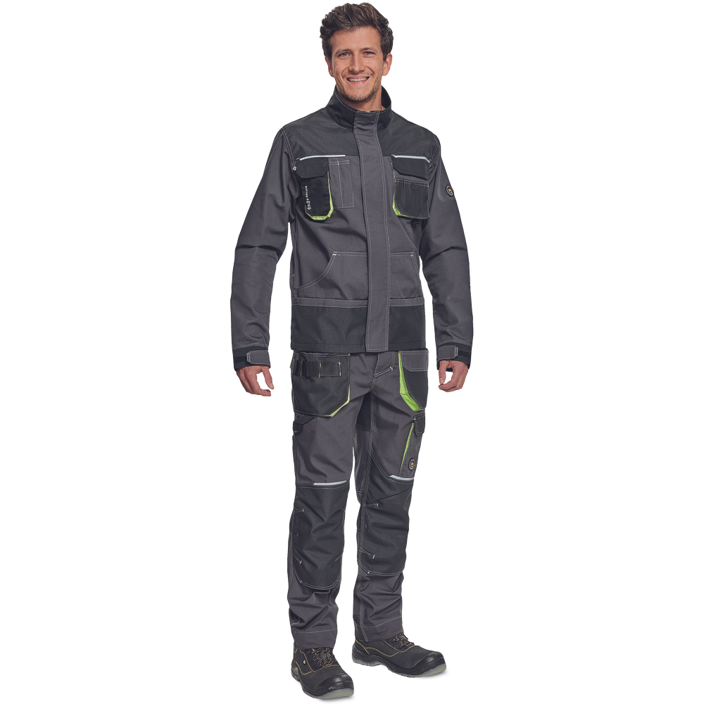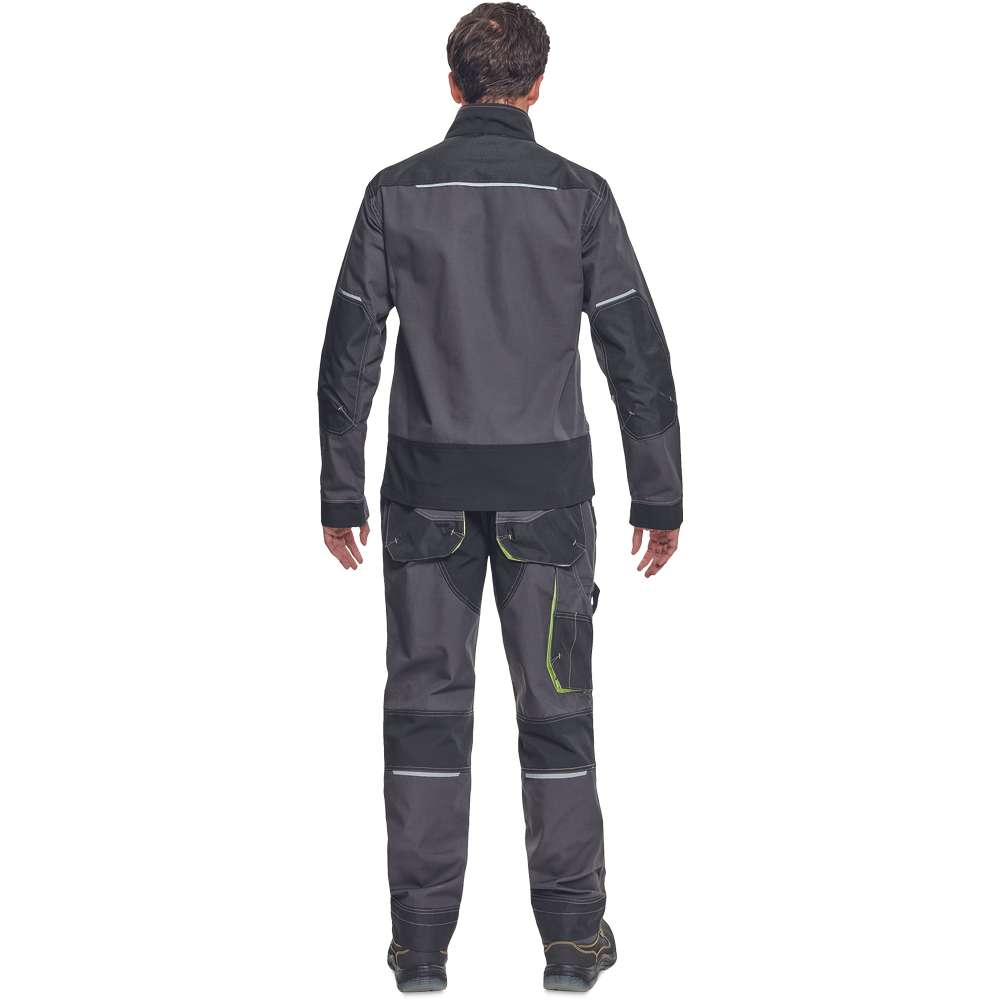 • pánská pracovní bunda • zapínání kryté légou na suchý zip • 2 prední kapsy • 2 náprsní kapsy • 1 náprsní kapsa na mobilní telefon • Oxford 600D zesílení loktu • reflexní prvky • kontrastní prošití