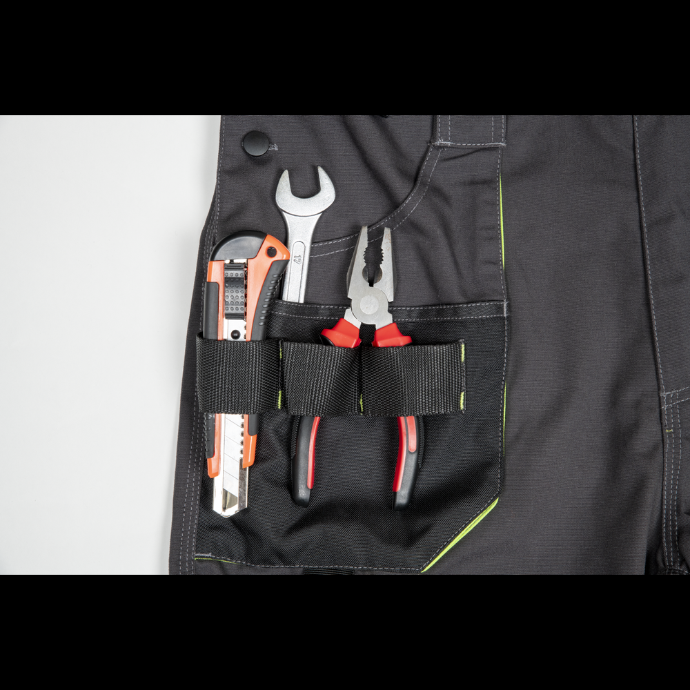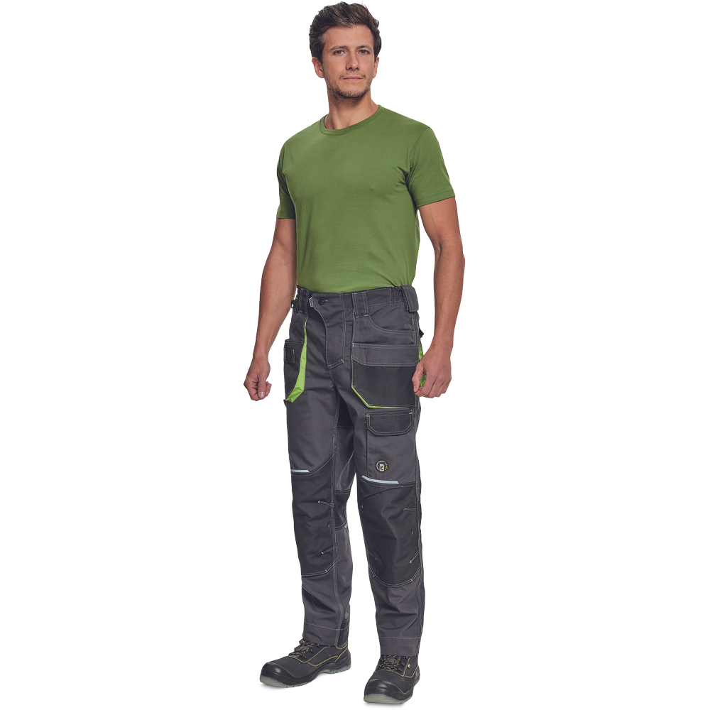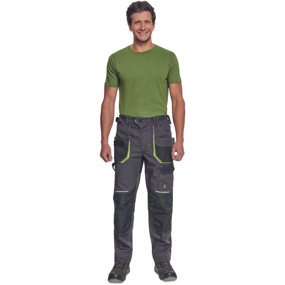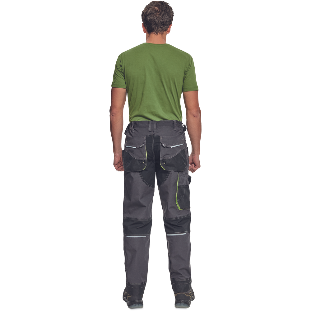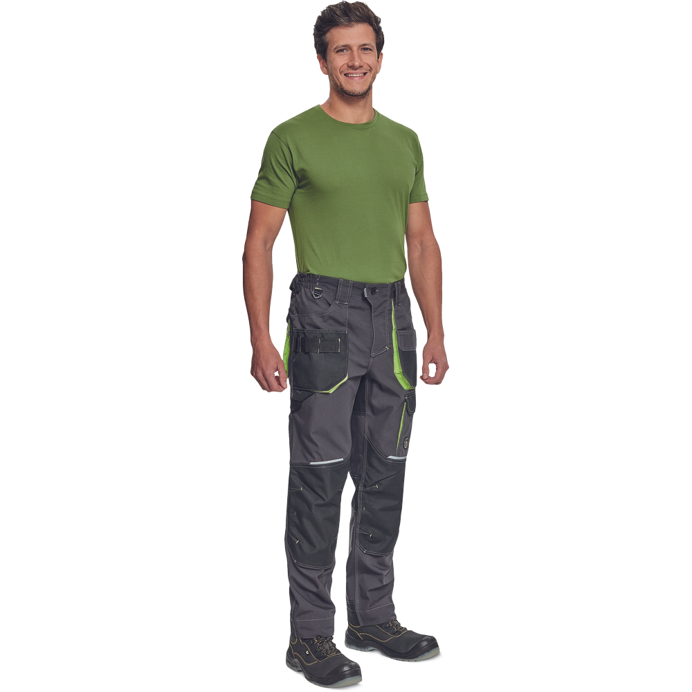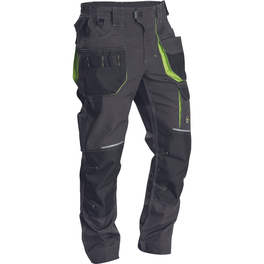• pánské pracovní kalhoty s pružným pasem a multifunkcními kapsami • Oxford 600D zesílení kolenních kapes pro vkládání ochranných nákoleníku • odolné trojité prošití nohavic a sedu • reflexní prvky • nastavitelná délka nohavic