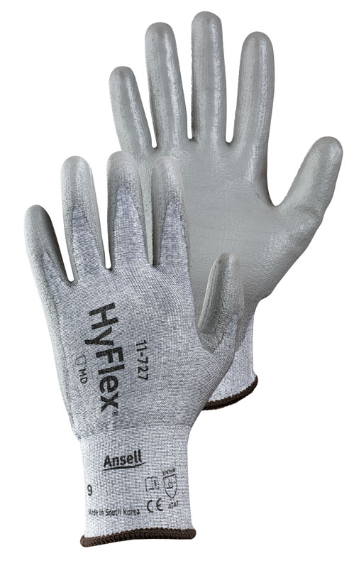 Pletené bezešvé rukavice, 15G úplet, kategorie prořezu 3 s vlákny INTERCEPTtm Technology, PU povrstvení. Pletené zápěstí.