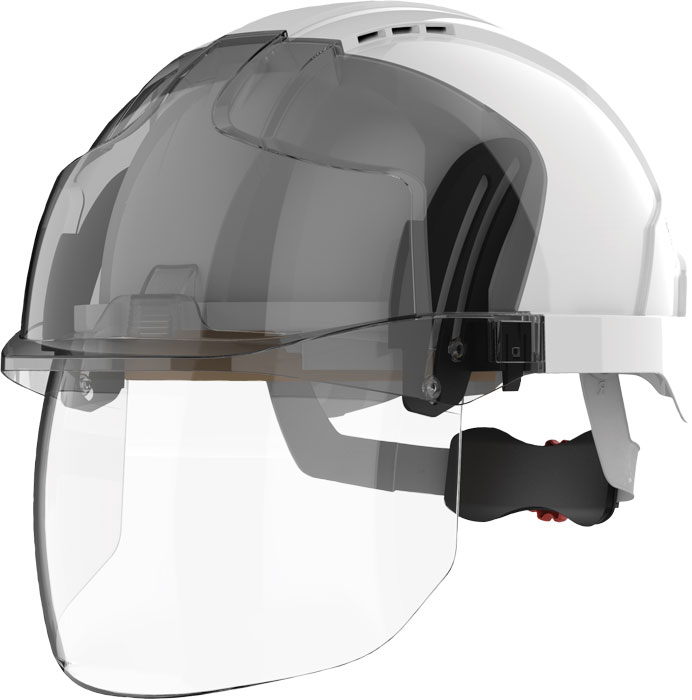 EVO® VISTA lens ™ je bezpečnostní helma nové generace založená na prověřené technologii ochrany hlavy Evolution®. Zahrnuje plně zasunovací integrovaný ochranný štít s optickou třídou 1, kategorie A. Ochranný štít je okamžitě k dispozici za každých podmínek, lze snadno nasadit, upravit a udržovat a zajistit. Vlastnosti a výhody - Optická třída 1 - vysoká optická kvalita bez optického zkreslení - Třída „K“ - Odolnost proti poškrábání jemnými částicemi proti poškození povrchu - Třída „N“ - Odolnost proti zamlžení - Kategorie A – ochrana proti částicím s vysokou energií o rychlosti až 685 km/h. - UV ochrana - 2: UV filtr (EN170) poskytuje ochranu před škodlivým UV. UV 2C-1.2 2: UV filtr (EN170) poskytuje ochranu před škodlivým UV. C: Nepříznivé vnímání barev. 1.2: Vysoká propustnost světla. - Ochrana před roztaveným kovem - Žádná penetrace do skořepiny helmy. Deformace skořepiny musí zůstat pod <10 mm - Příčná deformace - dodatečný test EN397 - Testováno do -40°C - Helma je předem ošetře