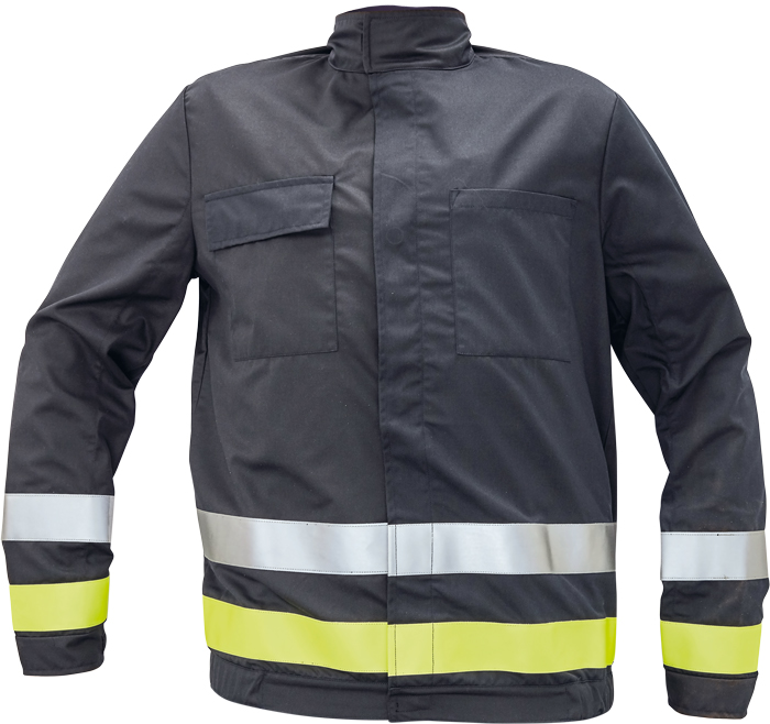 Antistatický ochranný odev nabízí ochranu pred teplem, ohnem a elektrickým obloukem. Poskytuje vhodnou ochranu pred úcinky elektrického oblouku vzniklého, pri jednofázovém zkratu (7 000 A) v síti nízkého napetí (max. 400 V, strídavé napetí 50 Hz). Jeho materiál má antistatické (elektrostaticky disipativní) vlastnosti, a z tohoto duvodu ho lze používat ve výbušných prostredích a v blízkosti horlavých materiálu. Hodí se pro pracovníky vystavené teplu a ohni. Ochranný odev zajistí ochranu pred úcinky prímého ohne po dobu 4 sekund a pred úcinky tepla o intenzite 20 kW/m2 po dobu 7 sekund. Materiál je sám o sobe odolný vuci teplu a ohni, a praní tak na nej nemá žádný vliv. Zapínání bundy na cvoky s klopou na suchý zip; široké záhyby na zádech; 1-1 stříbrný pásek a HI-VIS žlutý reflexní pásek okolo těla a na rukávech; přední část a rukávy jsou vyrobeny z dvojité vrstvy materiálu; manžety na rukávech na suchý zip; elastická manžeta v pase