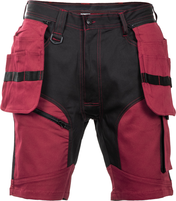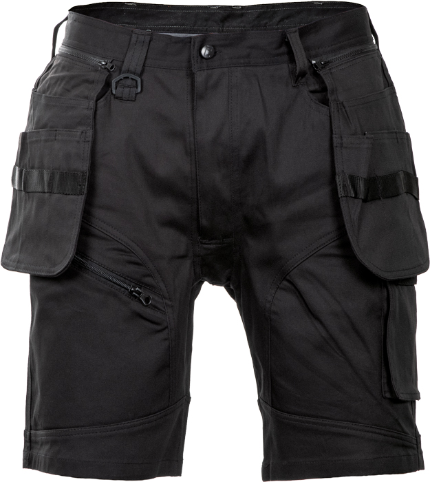 pánské pracovní šortky z elastického materiálu, 2 postranní kapsy, 2 vložitelné multifunkční kapsy na nářadí, "D" kroužek, 1 boční kapsa na nohavici s patkou, 1 kapsa na nohavici na zip, 2 nakládané zadní kapsy s patkou, dekorativní prošití