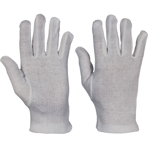 Rukavice šité z jemné bělené bavlněné tkaniny podle střihu fourchette.