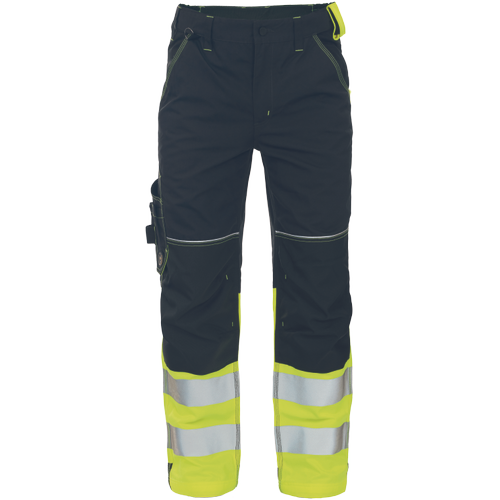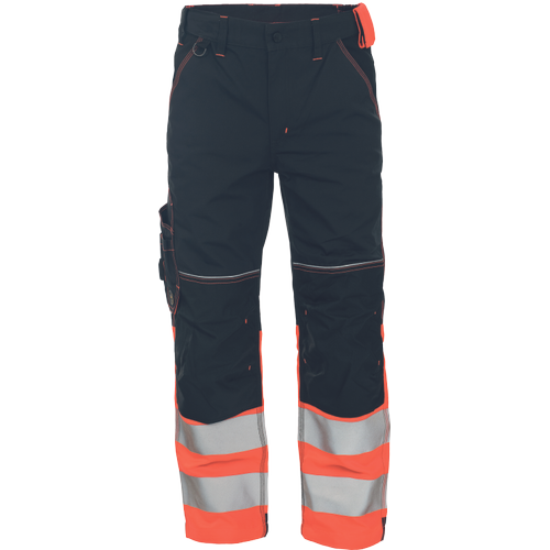 pánské pracovní kalhoty v kombinaci s HI-VIS spodní částí nohavic; dvojice tištěných 7,5 cm reflexních pruhů; elastický pas; 5 funkčních kapes; 600D Oxford zesílení v oblasti kolen s možností vkládání kolenních výztuh; dekorativní prošití v kontrastní HI-VIS barvě; nastavitelné délka nohavic.