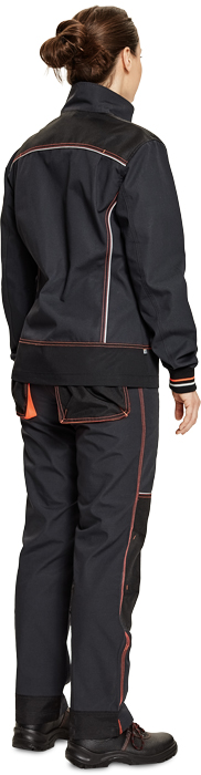 dámská pracovní bunda moderního střihu se stojáčkem; hluboké postranní kapsy; multifunkční náprsní kapsa; D kroužek pro přichycení; identifikační karty; zesílená oblast ramen; náplety na rukávech; prošití kontrastní nití v hi-vis barevném odstínu