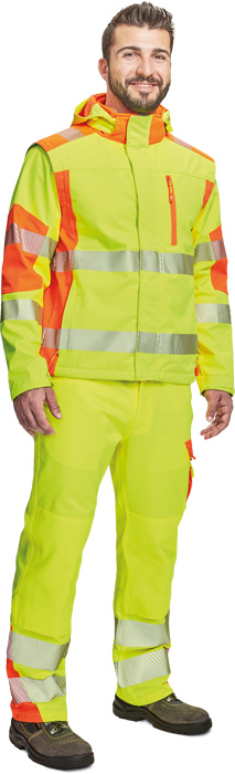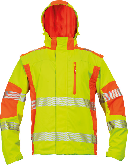 Pánská softshellová bunda s odnímatelnými rukávy, atraktivní 2-barevné provedení, 2 postranní kapsy na zip, náprsní kapsa na zip, 2 vnitřní kapsy, nastavitelná šíře spodního obvodu bundy pomocí stahovací šňůrky, nastavitelná šíře rukávů pomocí suchého zipu, kvalitní větru a vodě odolný materiál s TPU membránou.