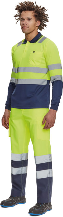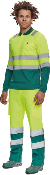 pánská Hi-Vis polokošile s dlouhým rukávem, retroreflexní pruhy přes ramena a v bocích, zapínání na 3 knoflíky, 1 náprsní kapsička, elastické lemy rukávů
