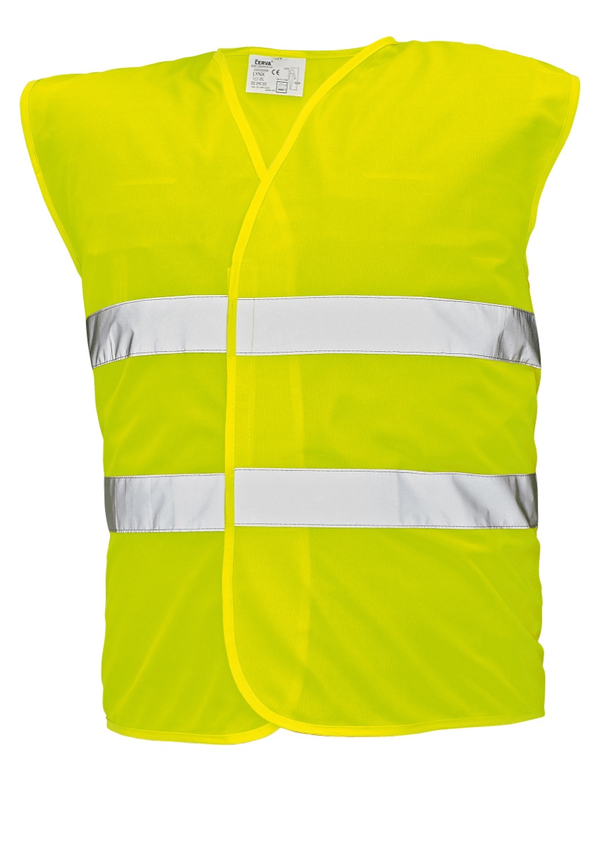 Výstražná vesta s vysokou viditelností dle normy EN 471. Vhodná pro potisk.