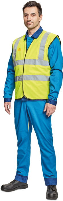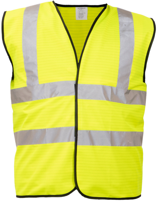 vesta s vysokou viditelností; reflektivní pruhy; zapínání na suchý zip; vhodné pro použítí v ESD chráněném prostoru