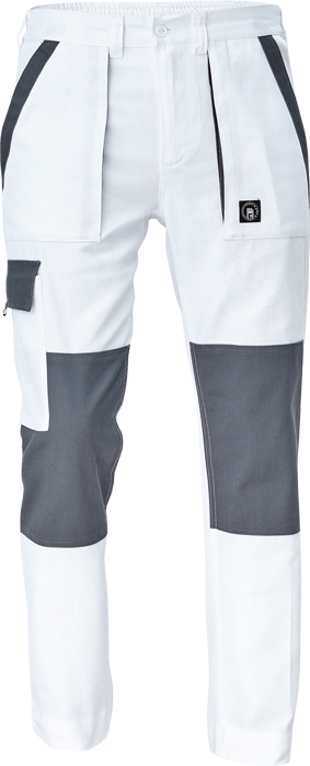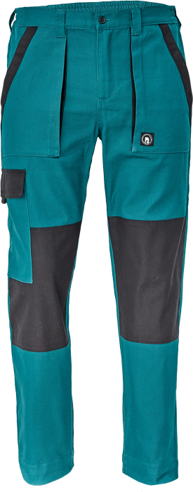 pánské pracovní kalhoty s elastickým pasem; 2 přední kapsy, 1 stehenní kapsa, 2 zadní kapsy; zesílená oblast kolen; nastavitelná délka nohavic.