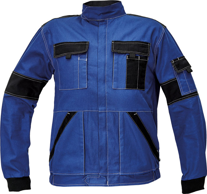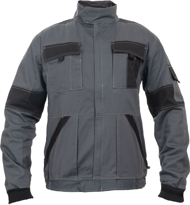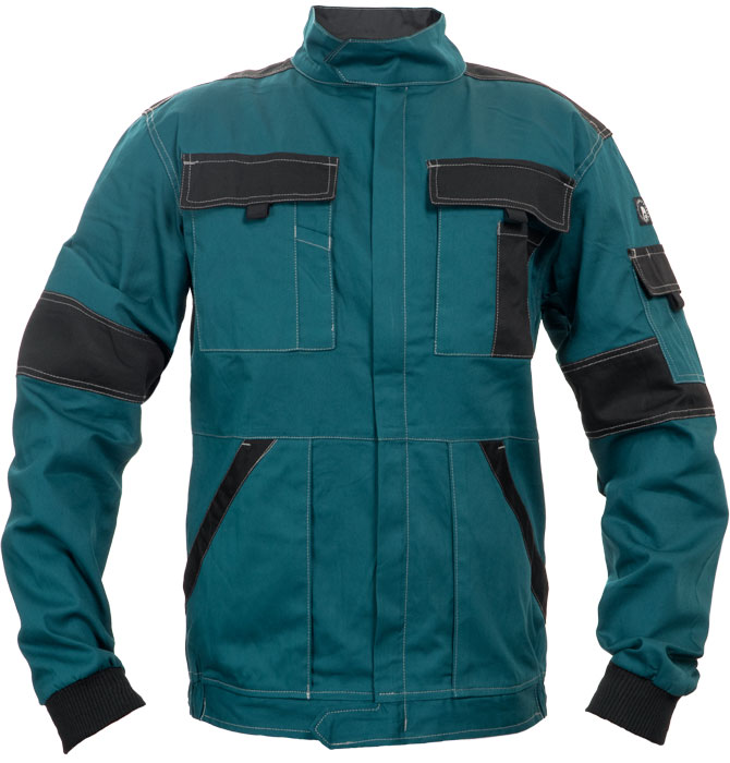 pánská lehká pracovní bunda se zapínáním na zip krytým légou; 2 přední kapsy, 2 náprsní kapsy s klopou; 1 malá kapsa na levém rukávu; zesílení namáhaných míst loktů a ramen; pružné manžety rukávů a spodní obvod v pase.