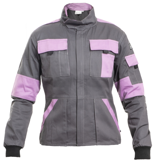 dámská lehká pracovní bunda se zapínáním na zip krytým légou; 2 přední kapsy, 2 náprsní kapsy s klopou; 1 malá kapsa na levém rukávu; zesílení namáhaných míst loktů a ramen; pružné manžety rukávů a spodní obvod v pase, 100% bavlna, gramáž 220 g/m2