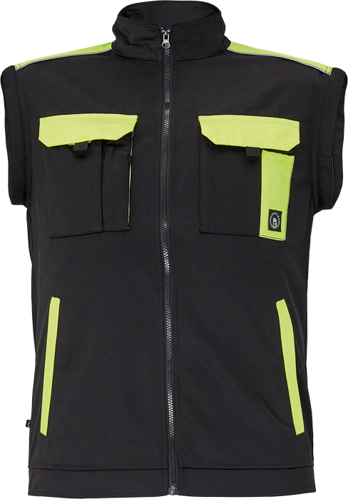 pánská pracovní bunda se zapínáním na zip; odepínatelné rukávy; 2 přední kapsy, 2 náprsní kapsy; zesílení namáhaných míst loktů a ramen; reflexní paspulky; pružné náplety manžet rukávů a elastický spodní obvod pasu.