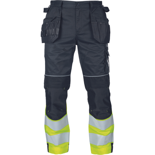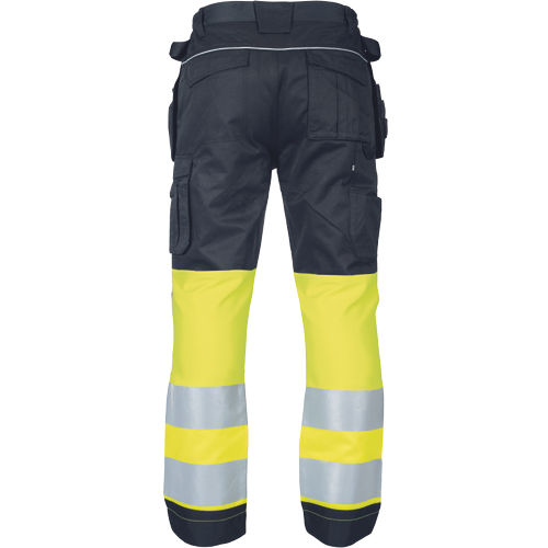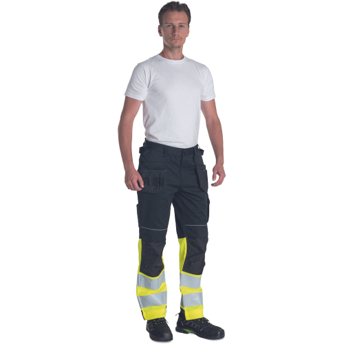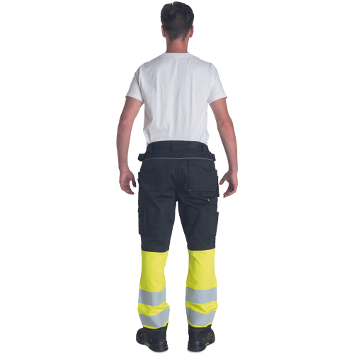 • pánské pracovní HI-VIS kalhoty s elastickým pasem • 2 multifunkční létací kapsy • 2 tištěné 7,5 cm široké reflexní pruhy na spodních nohavicích • zesílení kolenních částí Oxford 600D s možností vložení chráničů kolen • možnost prodloužení délky nohavic