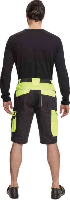 pánské pracovní šortky s elastickým pasem; 2 přední kapsy, 2 zadní kapsy; reflexní paspulky.