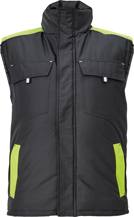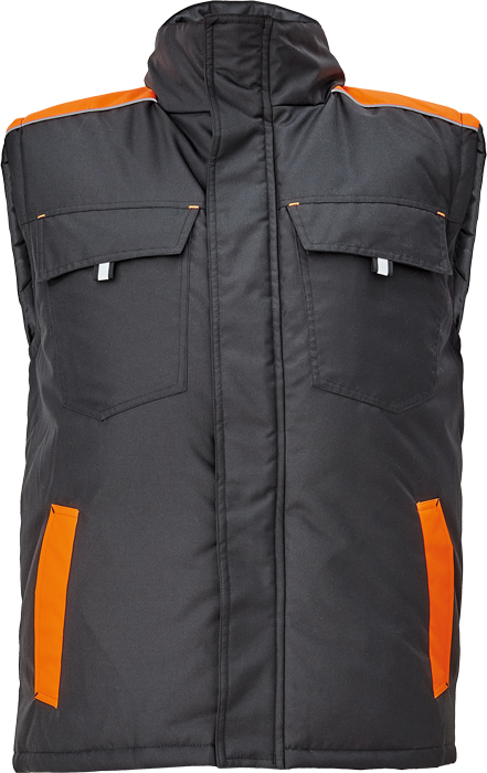 pánská zimní vesta; zapínání na zip kryté légou na suchý zip; 2 boční kapsy, 2 náprsní kapsy na suchý zip; 1 vnitřní kapsa na mobilní telefon; reflexní prvky.