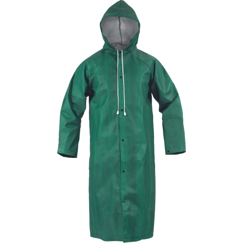 • nepromokavý plášť s kapucí a se zapínáním na druky • obvod kapuce je možné upravit pomocí tkanice • ventilace v podpaží • manžety rukávů se zapínáním na druky • zatavené švy • 100% recyklovatelný oděv