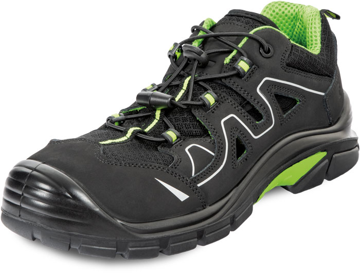 Moderní bezpečnostní sandály s kompozitní stélkou proti propichu a kompozitní tužinkou ve špici, která chrání před stlačením silou do 15 kN nebo pádem břemena o váze do 20kg z výšky 1m. Antistatická podešev vyrobena z kombinaci polyuretanu a velice odolné gumy garantuje nejenom komfort, ale i bezpečí díky protiskluzným vlastnostem podrážky, která je navíc rezistentní olejům a oděru. Svršek obuvi je vyrobený z přírodní kůže „NUBUCK“ a vnitřní podšívka z prodyšného polyesteru. Uzavíraní pomocí elastických tkaniček umožnuje ideálně přizpůsobit obuv k tvaru nohy. Reflexní prvky garantuji zvýšenou viditelnost uživatele. Tento model je vybaveny komfortní vnitřní stélkou, která díky gelové patě ještě lepe tlumí nárazy a přináší maximální pocit pohodli během práce. Tyhle boty vypadají jako sportovní obuv, ale při tom dokonale ochrání vaší nohy.