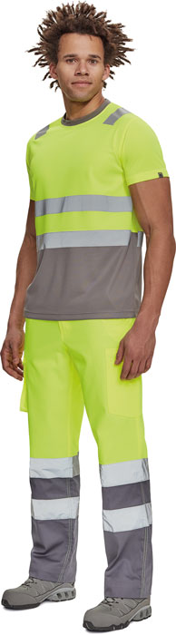 pánské Hi-Vis tričko s krátkým rukávem, kulatý průkrčník, retroreflexní pruhy přes ramena a v bocích