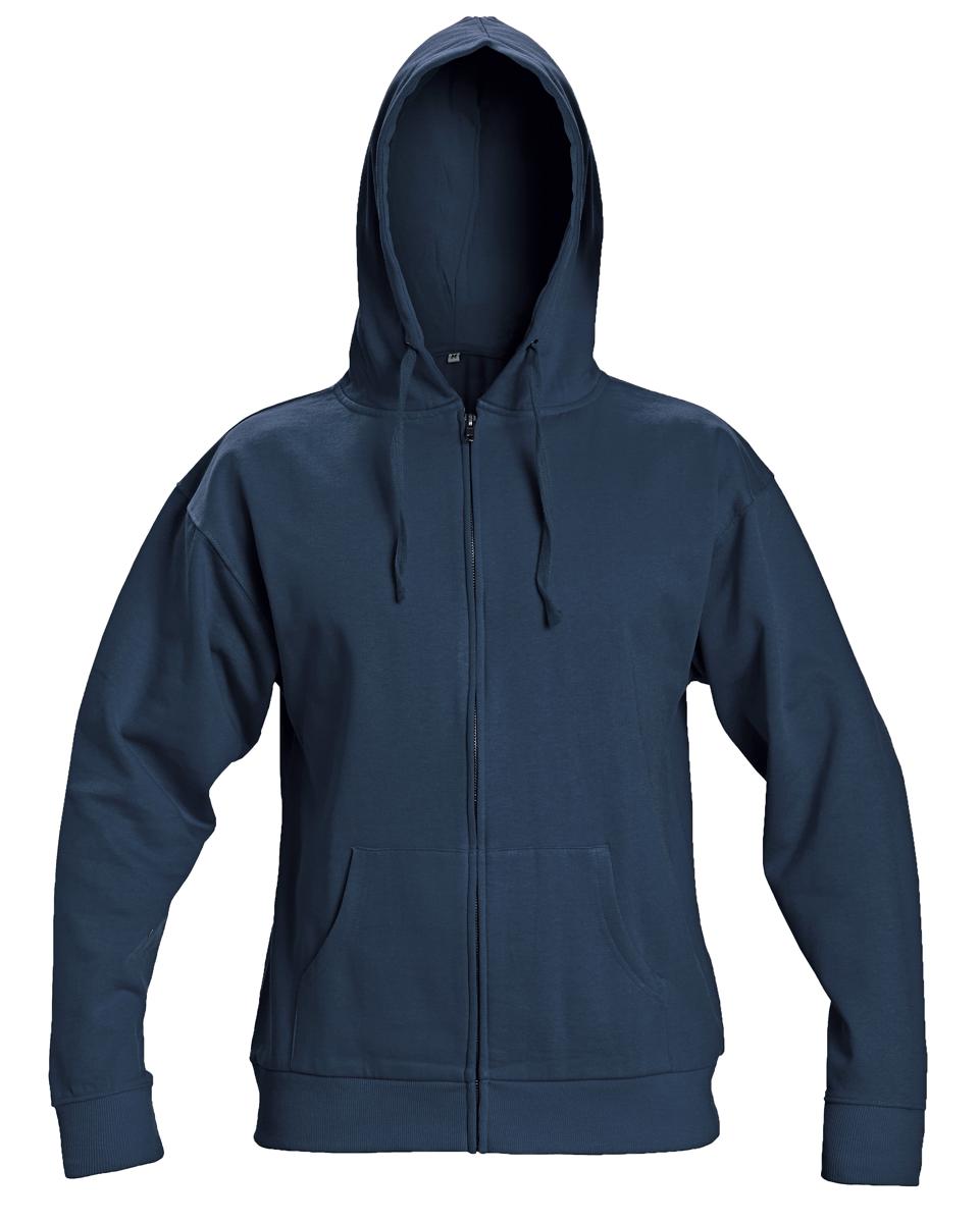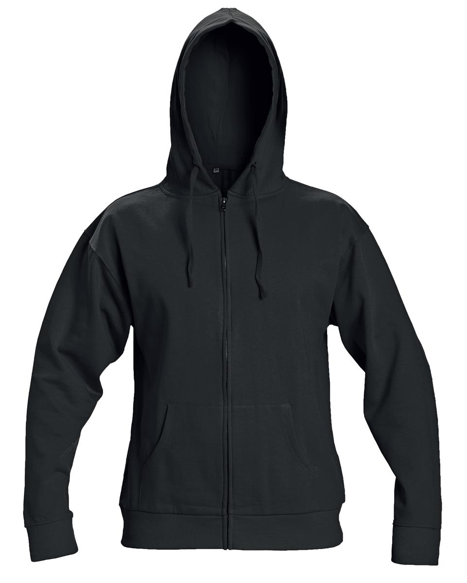 • mikina s kapucí • zatahovatelná kapuce na kulaté tkanice • celopropínací s kovovým zipem • vnitřní strana počesaná • spodní lem a manžety rukávů z žebrového úpletu s příměsím elastanu